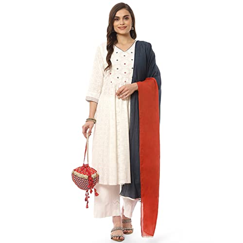 INDO ERA Women's Embroidered Silk Blend Straight Kurta Pant With Dupatta Set (Kh9Bp6009)