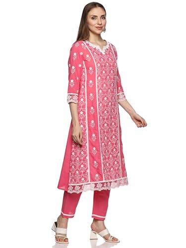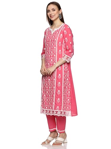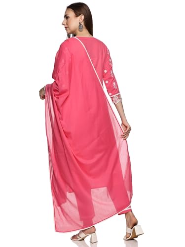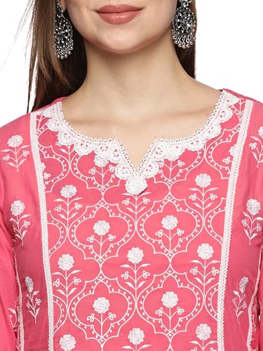 Libas Blue Yoke Design Cotton A-Line Kurta With Palazzos & Dupatta