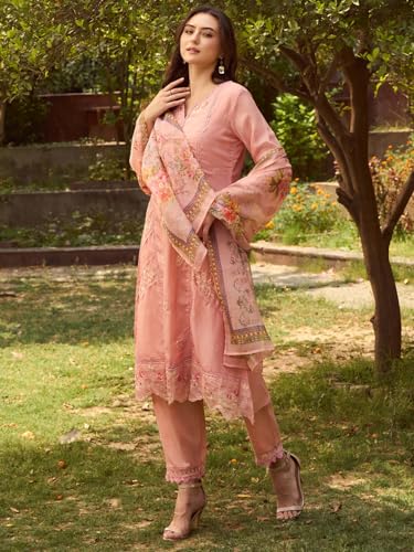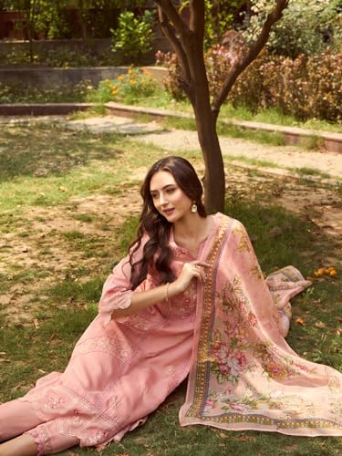 INDO ERA Women's Burgundy Yoke Design Pure Cotton Straight Kurta & Salwar with Dupatta Set (IESTR6386_Small)