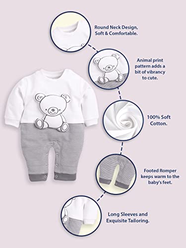 EIO 100% Cotton Rompers Sleepsuits Jumpsuit Night Suits for Newborn Baby Boys & Girls Pack of 3