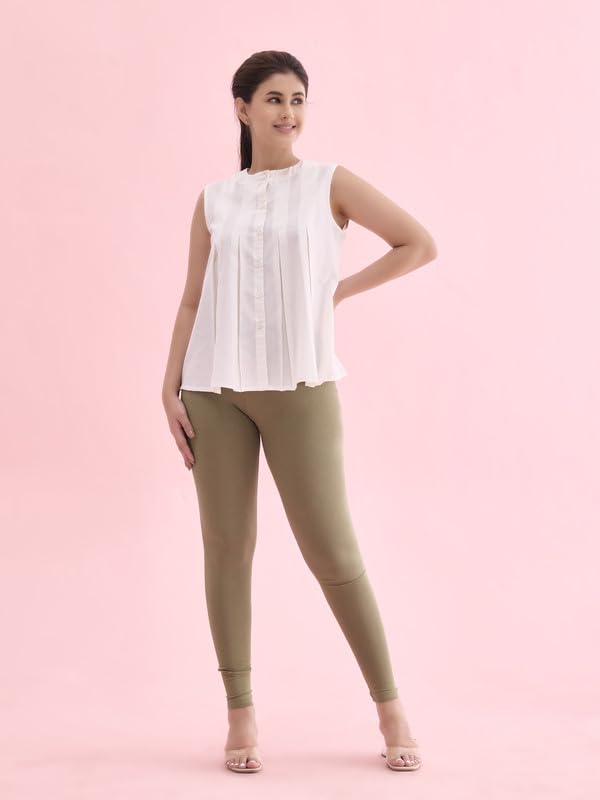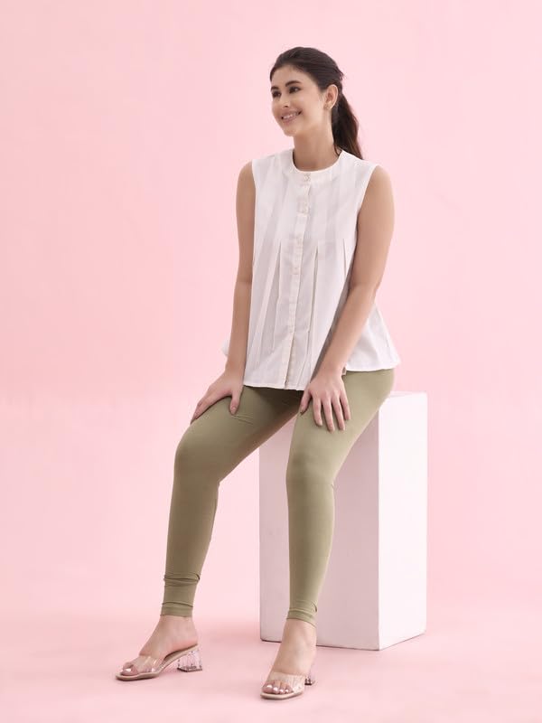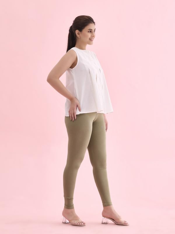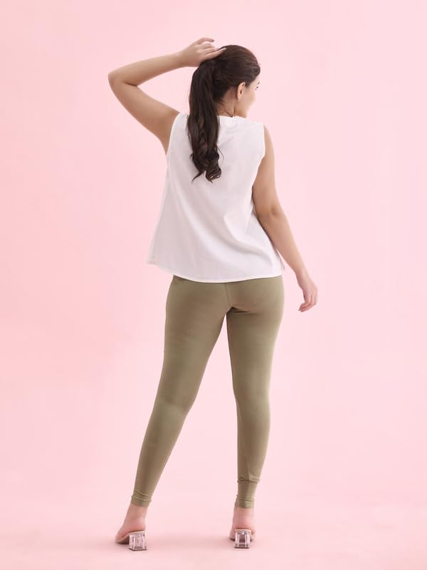 GO COLORS Women Green Cotton Side Stripe Active Leggings
