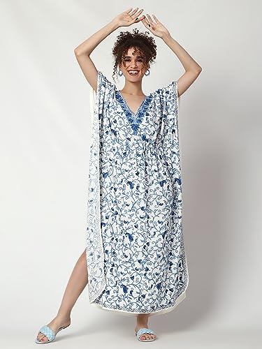Aarika Womens Sports Wear Blue Colour Nylon Abstract Print Swim Suit