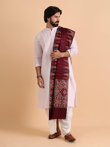 tweedle Men’s Jamawar Weave Warm and Soft Woolen Shawl/Stole with Self Design and Border (40 x 80 inches)