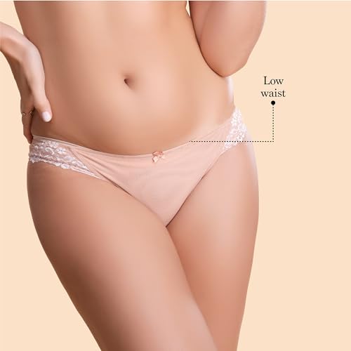 Enamor P091 Cotton Low Waist Medium Coverage Bikini Panty with Sensuous Look at The Back and Sides with Unique Butterfly lace for Women
