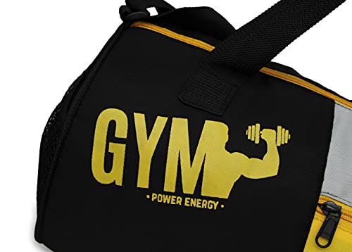 New Bag Combo Set of Duffle PU Leather Bag with Shaker Bottle-500ml, Gloves & Wrist Bag/Gym Bags/Adjustable Shoulder Bag for Men/Duffle Gym Bags for Men/Fitness Bag/Carry Bags (Yellow)