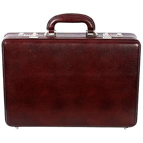 HYATT Leather Accessories 17 Inch Men's Leather Briefcases Office Bags With Side Combination Lock | Dimension L- 17 X W- 3 X H-13 In Inches