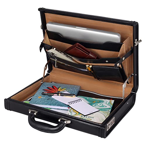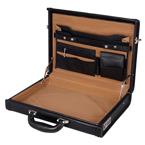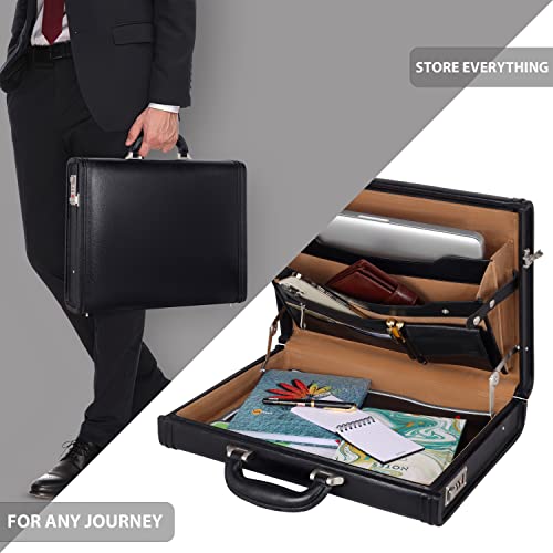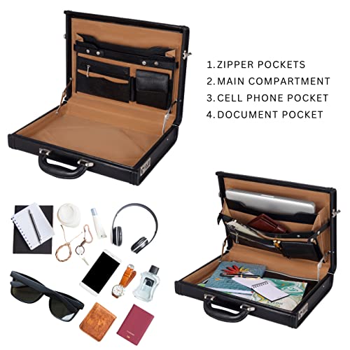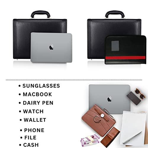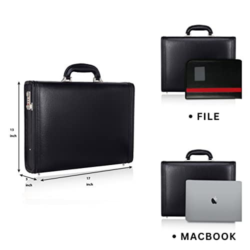 C Comfort Genuine Leather Briefcase Laptop Compartment Expandable Features High-Security Combo Number Lock Black Briefcase Bag for Men