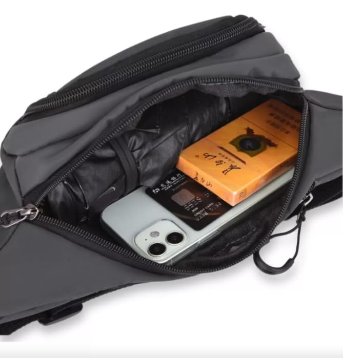 EAGLESCOUT Stylish Real Leather Black Waist Bag Elegant Style Travel Pouch Passport Holder with Adjustable Strap for Men & Wmen Black