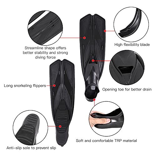 Segolike Adjustable Open Heel Scuba Free Diving Dive Swim Training Full Foot Fins Flippers Shoes + Snorkeling Gear Mesh Drawstring Bag
